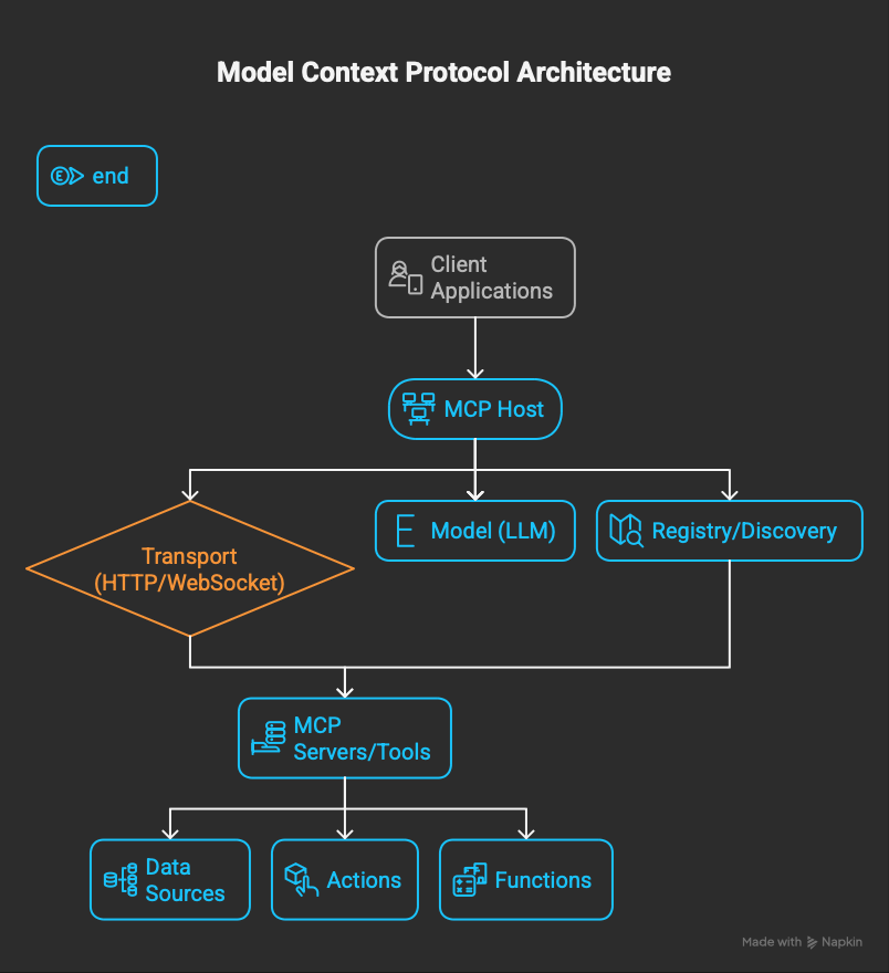 - Client: the embedded connector that speaks the MCP protocol.